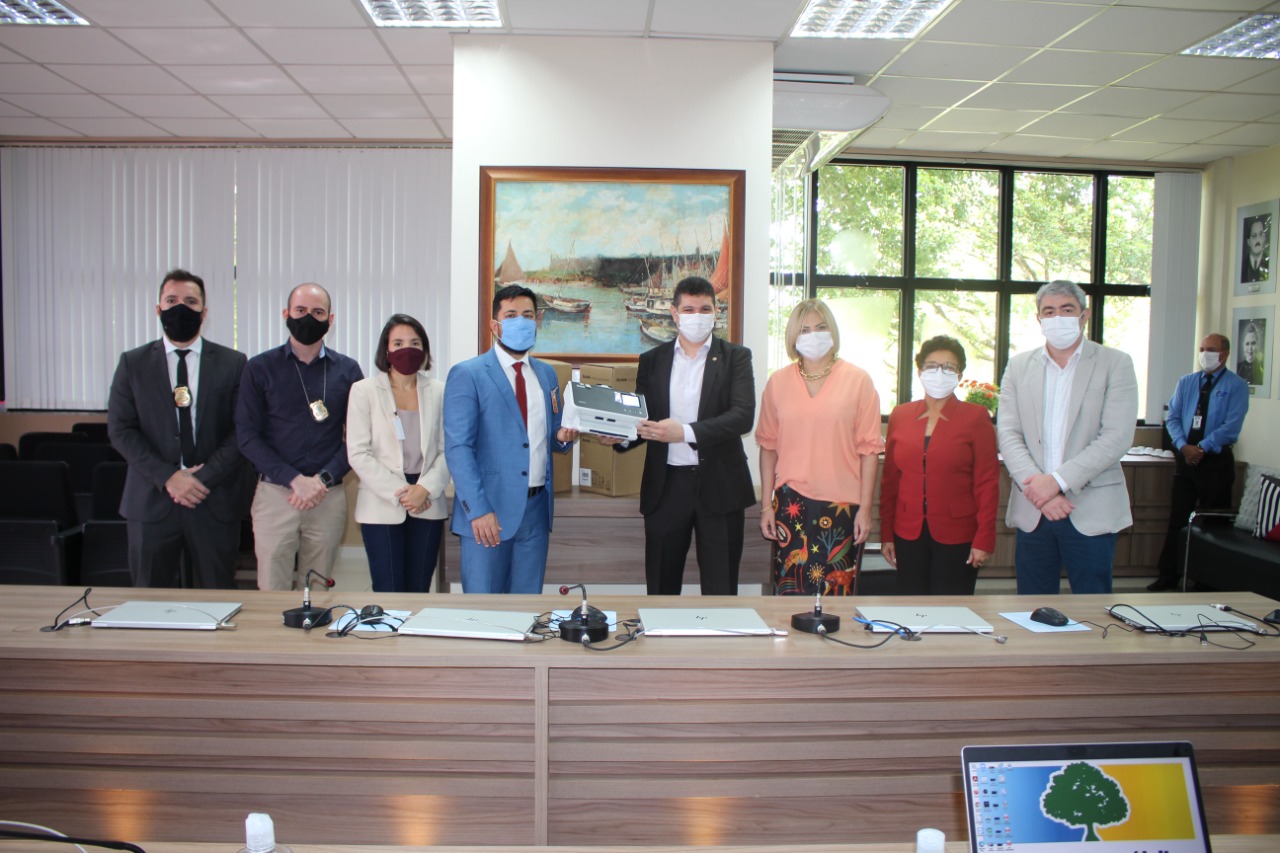 Nesta quinta-feira (24), a procuradora-geral de Justiça do Ministério Público do Amapá (MP-AP), Ivana Cei, entregou ao superintendente regional da Polícia Federal no Estado (PF/AP), delegado Anderson Bichara, equipamentos para atividades de digitalização, necessários na execução do Projeto “Higidez e Integração dos Sistemas de Informação". O projeto, desenvolvido pela PF/AP, em parceria com MP-AP e outras instituições, conquistou em 1º lugar no Concurso Nacional de Inovação da Polícia Federal.