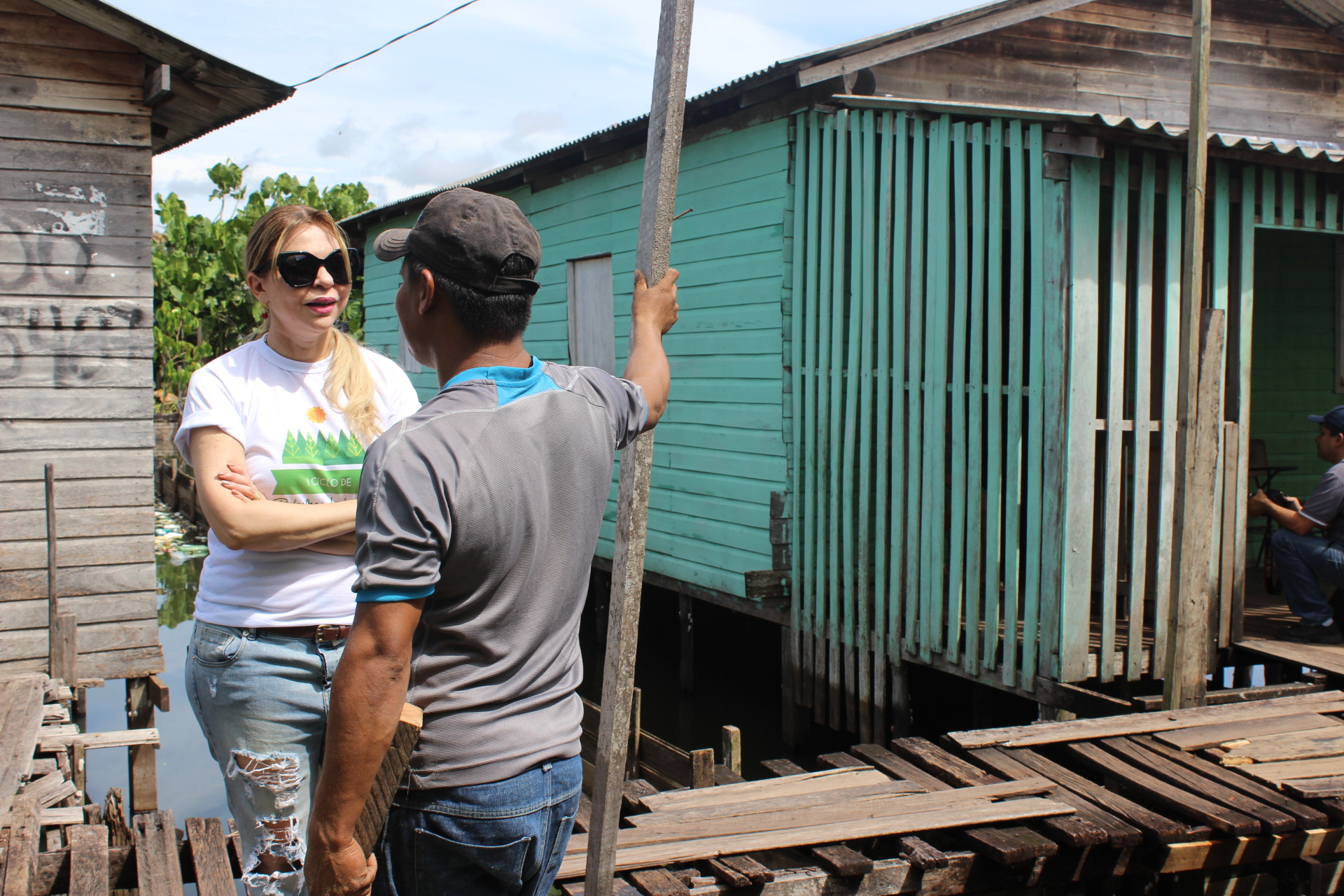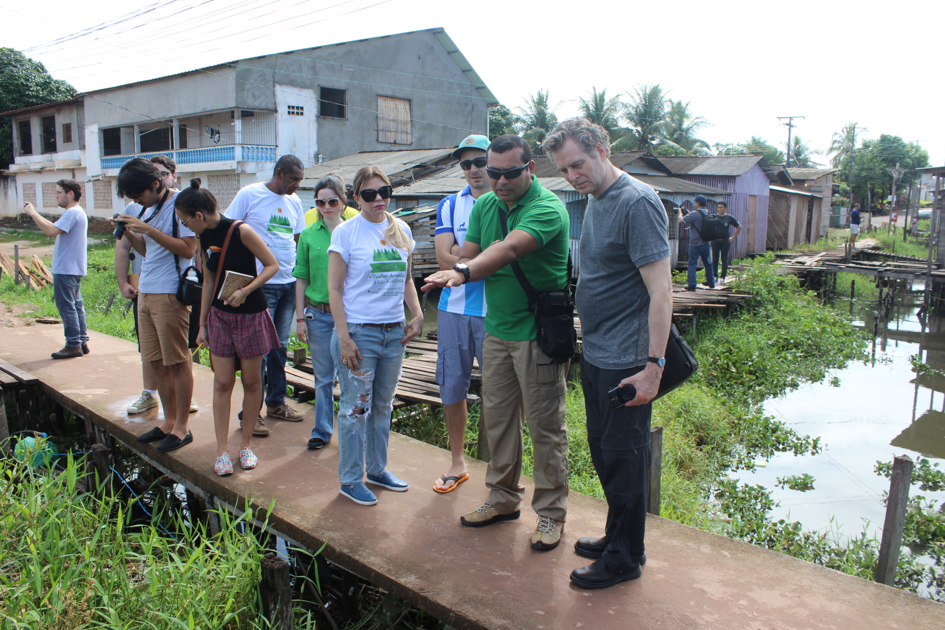 A coordenadora do CAOP Ambiental, promotora de Justiça Ivana Cei, coordenou a visita à uma área de ressaca do bairro Congós, acompanhada do técnico da Promotoria de Justiça de Defesa do Meio Ambiente, Habitação e Urbanismo (Prodemac), Michael Ribeiro, que teve por objetivo mostrar a realidade dessas moradias ao professor doutor da The New School University, Peter Lucas, e aos alunos do curso de Arquitetura da Universidade Federal do Amapá (UNIFAP), sob a coordenação da professora Bianca Moro.
